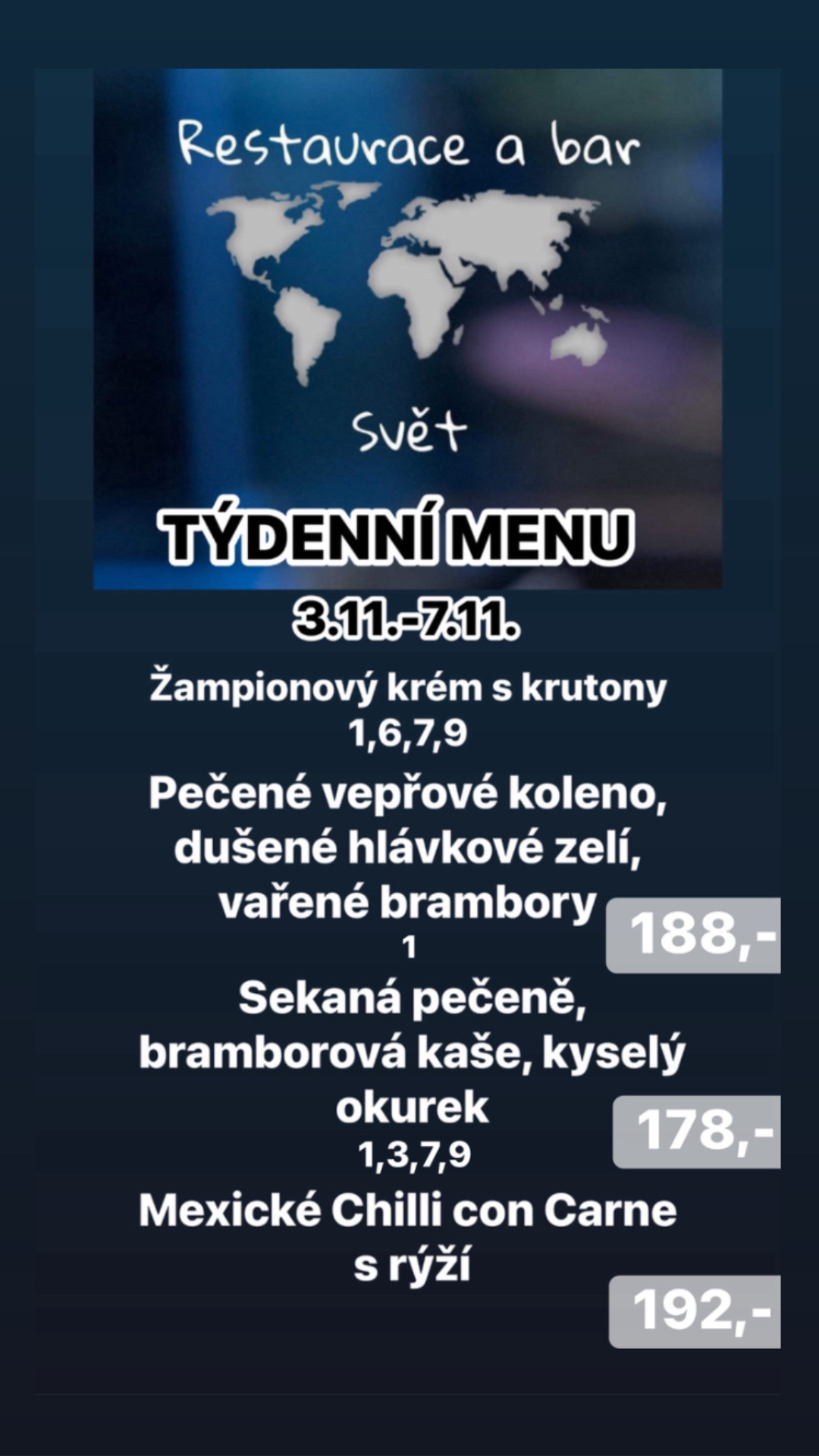 Chcete strávit příjemný večer s rodinou či přáteli a vychutnat si naše rozmanité české speciality? Tak neváhejte a navštivte právě naši restauraci. Přijďte se podívat do naší restaurace Restaurace Svět, restaurace Vás okamžitě nadchne svým bohatým jídelníčkem a příjemnou atmosférou. Útulné a pohodlné venkovní posezení! To je naše zahrádka, kde se budete cítit jako doma na terase. Klimatizovaný interiér Vám dopřeje požitek z dobrého jídla, zajistí chládek a Vy si tak budete moci odpočinout od silných slunečních paprsků.